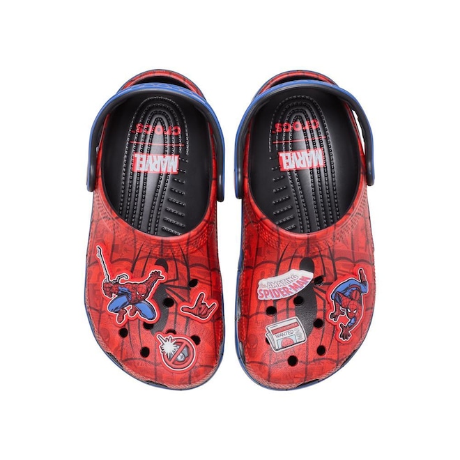Seus pequenos super-heróis vão adorar o novo clog Spider-Man Web Classic. O icônico calçado ganha uma transformação estilo aranha e apresenta uma sutil estampa gráfica do Homem-Aranha sob sua teia característica e o logotipo da aranha no cabedal e no calcanhar. Cada par também vem com uma coleção de Jibbitz do Homem-Aranha, além de espaço para que eles possam adicionar ainda mais de seus Jibbitz favoritos no cabedal e na tira do calcanhar.