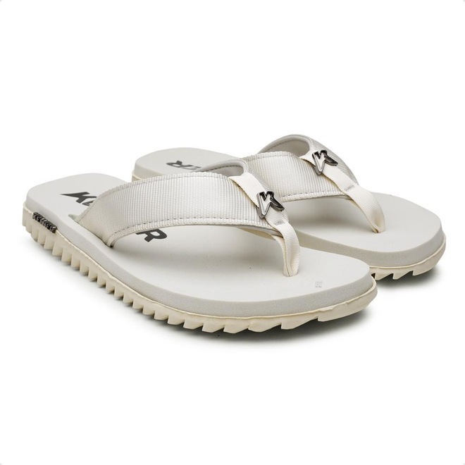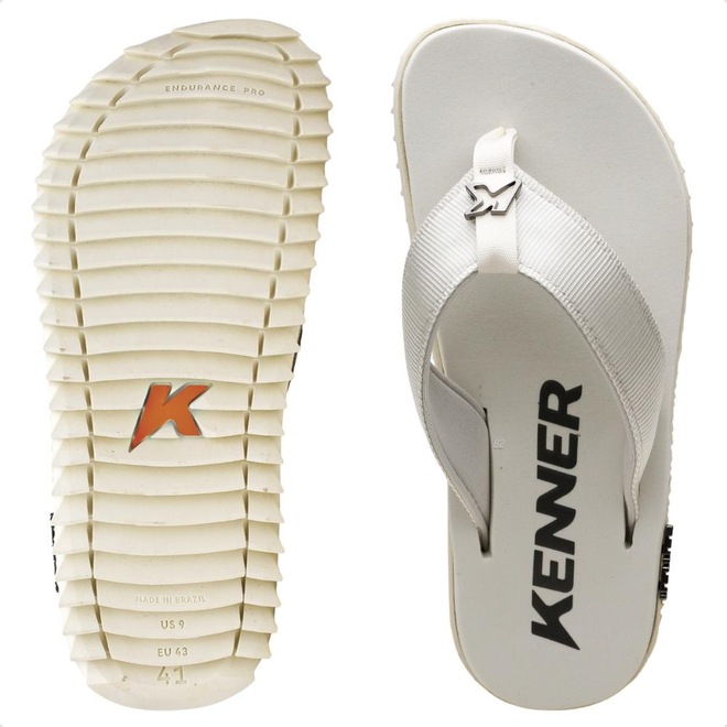 Cabedal tridimensional em gel com revestimento interno em neoprene preto que evita o atrito com a pele Palmilha lixada de eva expandido, com arte de palmilha em laser Identificadores com K dourado vazado e "KENNER" de metal também no dourado na lateral do solado Solado tratorado de borracha vulcanizada