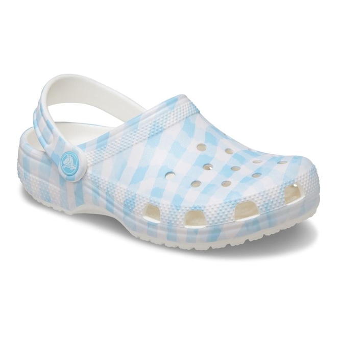 Uma charmosa estampa de algodão proporciona estilo extra a esta versão do icônico clog. A estampa elegante ajuda você a mostrar seu espírito criativo e a construção em espuma Croslite os mantém leves e fáceis de usar. O guingão azul também está disponível para crianças, para que você possa conseguir pares que combinem para um momento divertido em família. Fundamentado no conforto, repleto de personalidade.