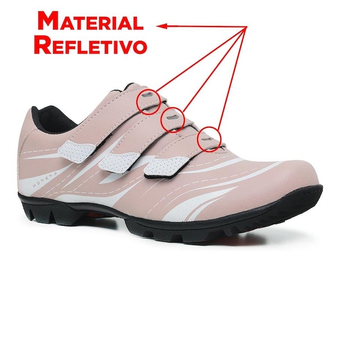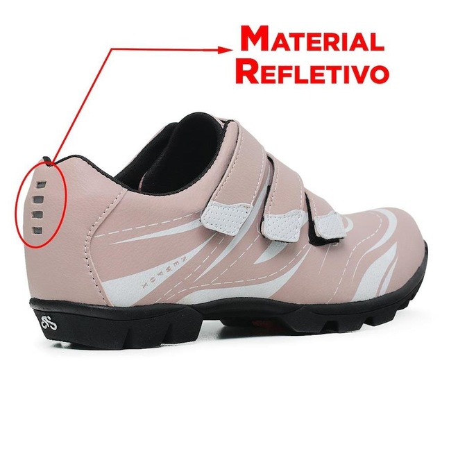 Sapatilha fabricada em couro sintético com partes internas em tecido/malha mesh, permitindo pedalar com muito mais conforto sem perder o foco no desempenho.Solado em borracha macia produzida com o emprego de diferentes tecnologias aderentes ao pedal, desenvolvido exclusivamente para pedalar, testado e aprovado por 97,6% dos usuários do modelo.