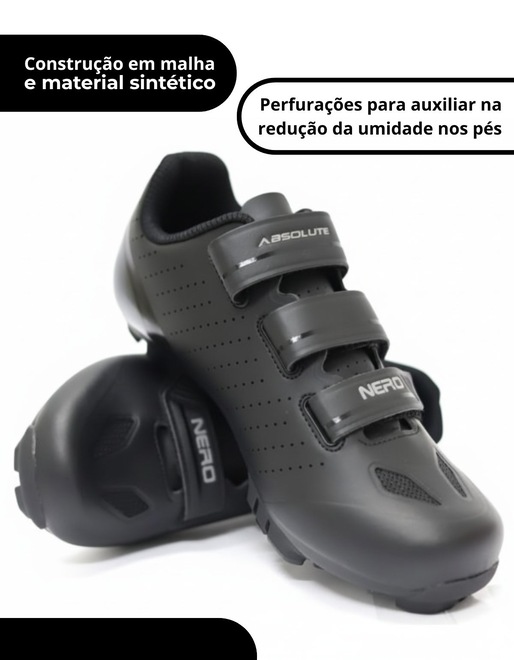 A linha Nero da Absolute sempre foi sinônimo de destaque, e a Sapatilha de Ciclismo Nero 5 MTB mantém essa reputação com inovações para ciclistas que buscam alta performance a um preço acessível. Seu cabedal robusto e bem ventilado é confeccionado em material sintético, garantindo durabilidade e conforto. O sistema de fechamento é simples, composto por três tiras de velcro, que oferecem ajuste seguro e eficiente.