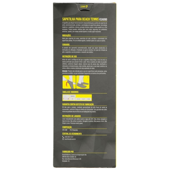 A Kestal é uma marca de acessórios fitness e ortopédicos focada em oferecer produtos modernos de alta performance e qualidade que possibilitam a prática de exercícios físicos em qualquer lugar, age como complemento ou substituto da academia. Ateste a qualidade da marca com a Sapatilha Kestal Beach Tennis Onça, feita com material resistente, flexível e respirável, que se adapta ao formato do seu pé e evita o acúmulo de areia.