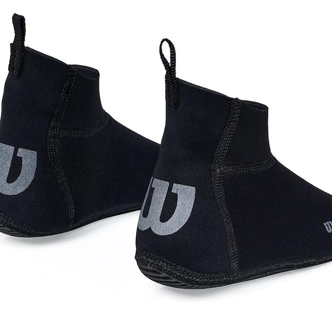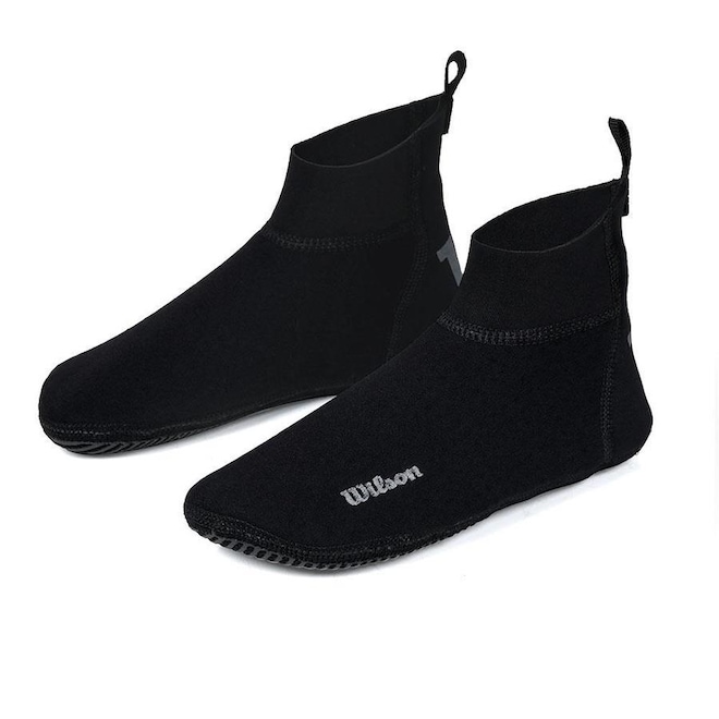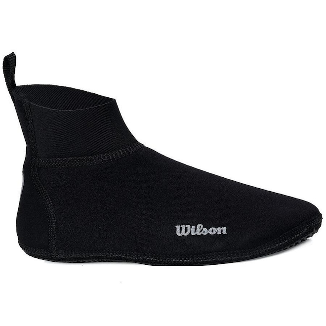 Conheça as características da Sapatilha Wilson Club Beach Shoe ' e ' - Perfil: Beach Tennis - Material: 94% Elastômero sintético policloropreno revestido, 3% plastisol, 2% elastano e 1% poliamida - Detalhamento: Sapatilha com cano médio, sola em borracha extremamente maleável com ranhuras para melhor aderência, marca Wilson estampada na cor prata na lateral externa - Garantia do fabricante: Contra defeitos de fabricação - Origem: Importado.