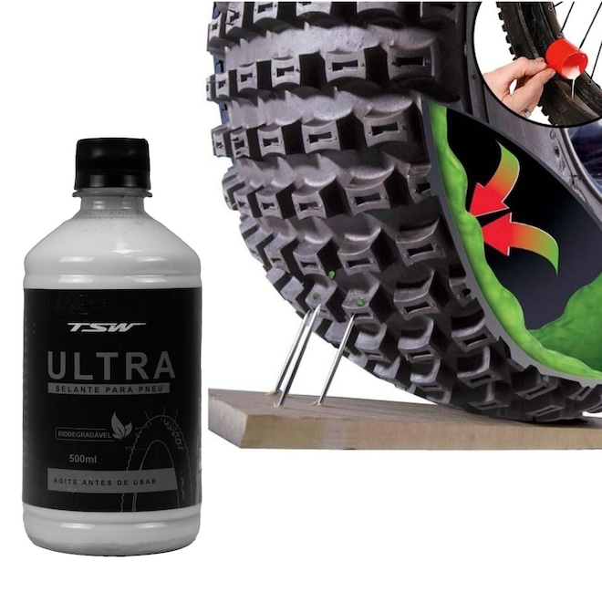 O selante para pneu de bike tubeless TSW Ultra 500 ml é utilizado para a vedação de pneus de bicicletas, agindo de forma eficaz em furos de até 4 mm em pneus tubeless (sem câmara).