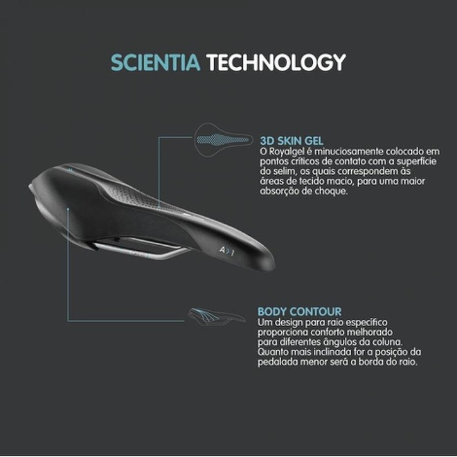 Scientia é um espectro completo de 9 selins ergonômicos cientificamente projetados para se adaptar de forma precisa e ampla a cada ciclista.