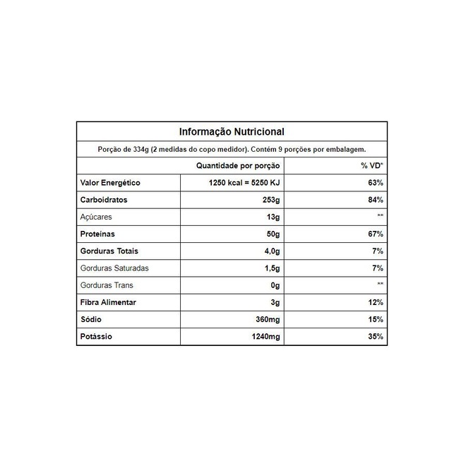 Contém TCM ou MCT (Triglicerídes de Cadeia Média): É um óleo vegetal extraído do coco e a sua função é aumentar o aporte calórico do produto. O TCM aumenta a absorção dos minerais, a recuperação muscular e a massa magra. Não acumula gordura no tecido adiposoref: M03D8H