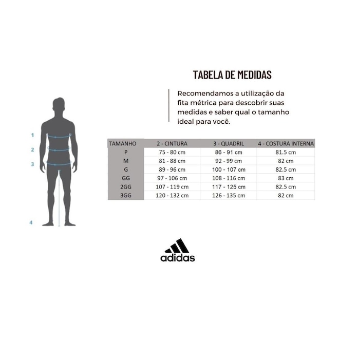 - Detalhamento: Cós elástico. Bolsos laterais, as Três Listras referência da marca aplicadas nas laterais, tecido microperfurado para maior respirabilidade. Logo Adidas estampada na perna esquerda, escrita Aeroready na parte de trás, do lado direito, próxima ao cós;