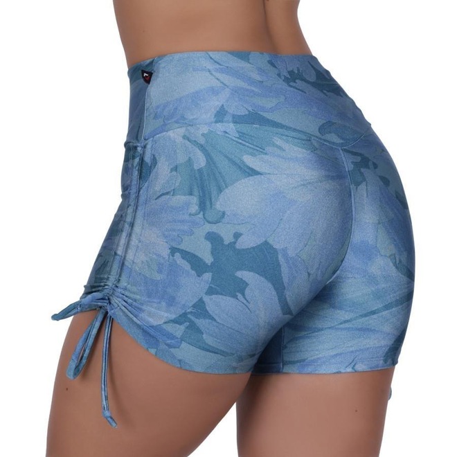 Shorts Curto Fitness Orbis Cadarço Franze Lateral Estampado - Feminino