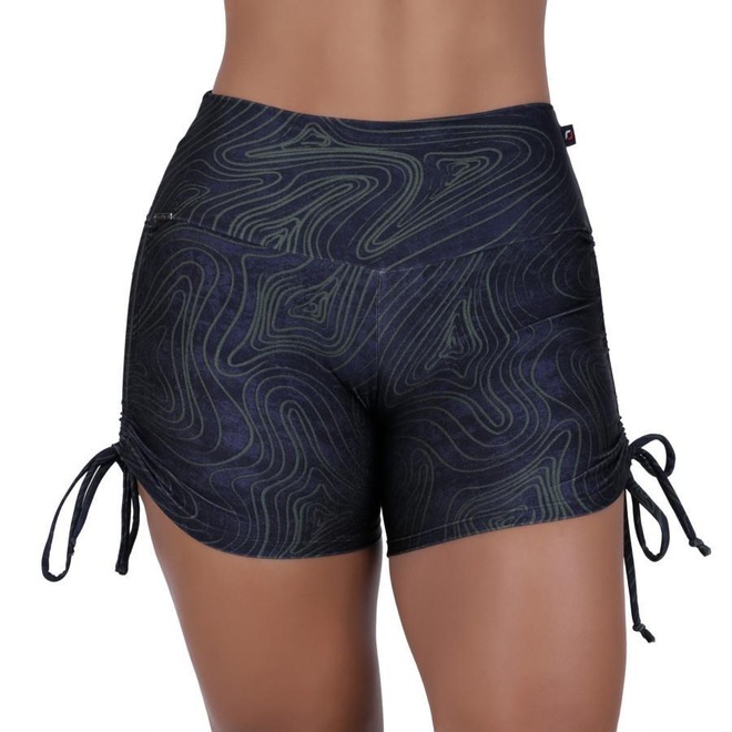 Shorts Curto Fitness Orbis Cadarço Franze Lateral Estampado - Feminino