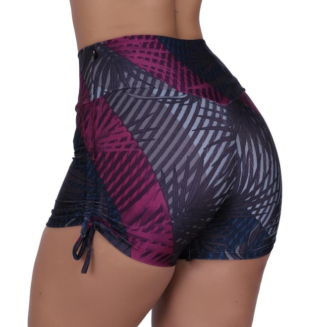 Shorts Curto Fitness Orbis Cadarço Franze Lateral Estampado - Feminino
