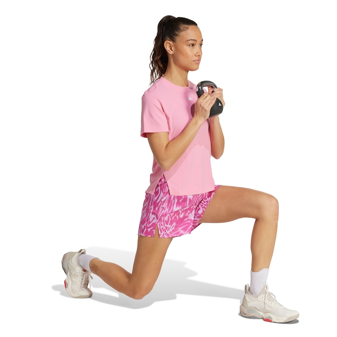 O Short Essentials Workout da adidas conta com estampa moderna, cós elástico ajustável e modelagem padrão que valoriza o corpo com costuras estratégicas.
