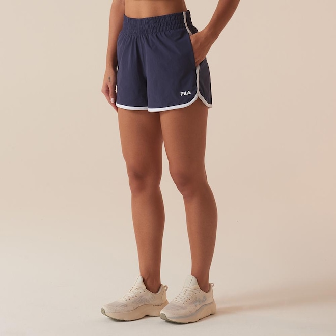 Short feminino confeccionado em tecido plano de poliamida com elastano, indicado para treinos de baixa e média intensidade. Modelagem boxer com as tecnologias FLOW, que mantém o corpo na temperatura ideal para a prática esportiva, e a UV PROTECTION FPS 50+. Possui bolsos laterais, bolso traseiro aplicado no cós, pala e recortes traseiros anatômicos, barra assimétrica nas laterais com acabamento em viés contrastante para maior mobilidade.ref: M17MEW
