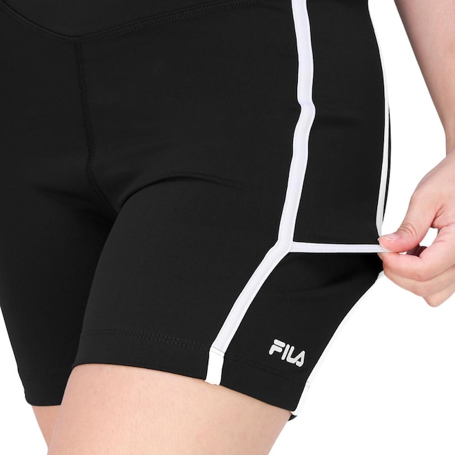 - Detalhamento: Cós elástico, escrita Fila aplicado próximo à barra no lado esquerdo, tecido confortável e de leve compressão. Bolsos invertidos nas laterais para as bolinhas de tênis, detalhes de costura na cor branca conferindo mais estilo à peça;
