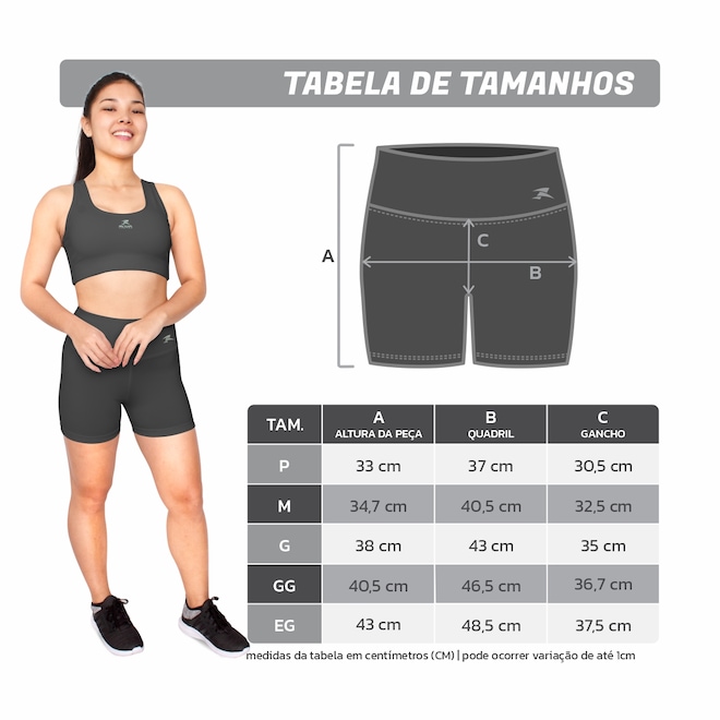 ÓTIMA MODELAGEM: Tem uma modelagem simples e eficiente. Possui cós alto e o comprimento ideal para permitir a movimentação sem se preocupar com o short subindo e gerando desconforto. Disponível em tamanhos variados que vão do P ao EG