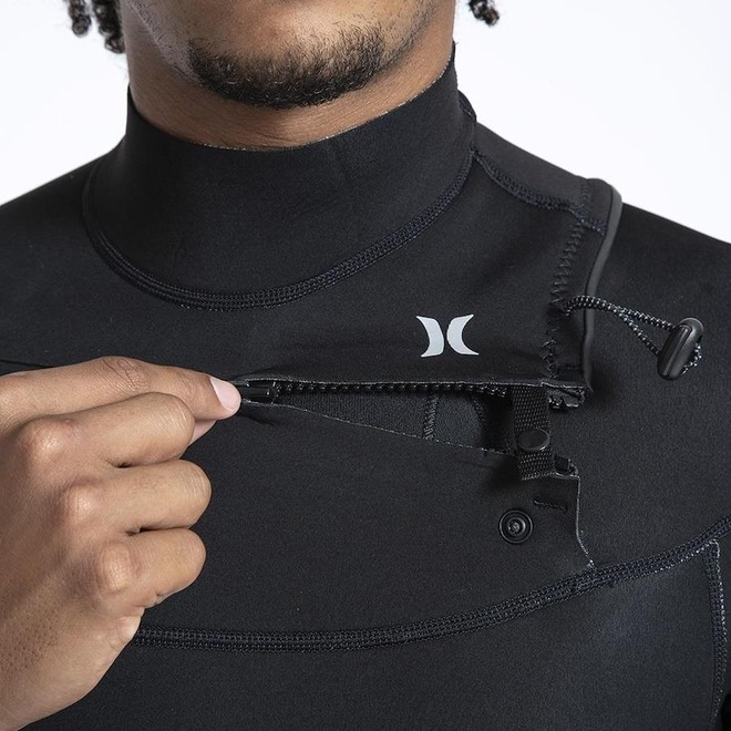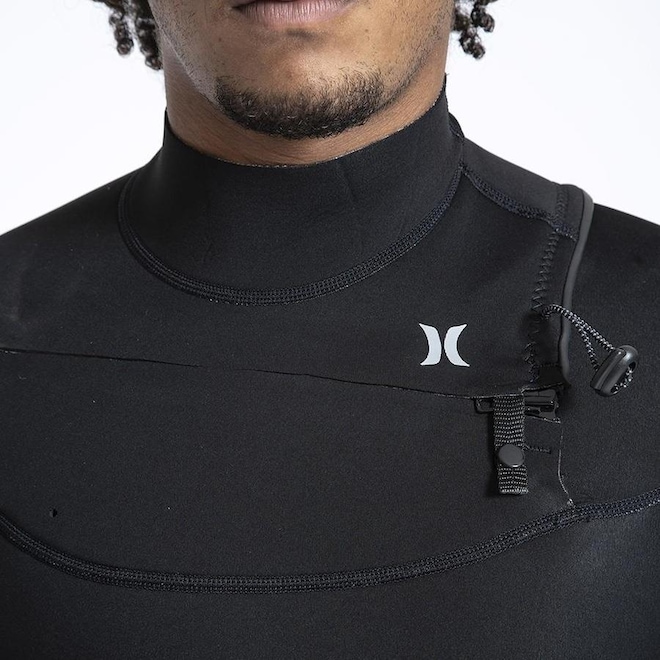 Long John Hurley manga longa 3/2mm que possui calor sustentável, criado usando processos ecologicamente corretos, incluindo tintura preta reciclada de pneus velhos, fios tingidos e borracha à base de calcário.