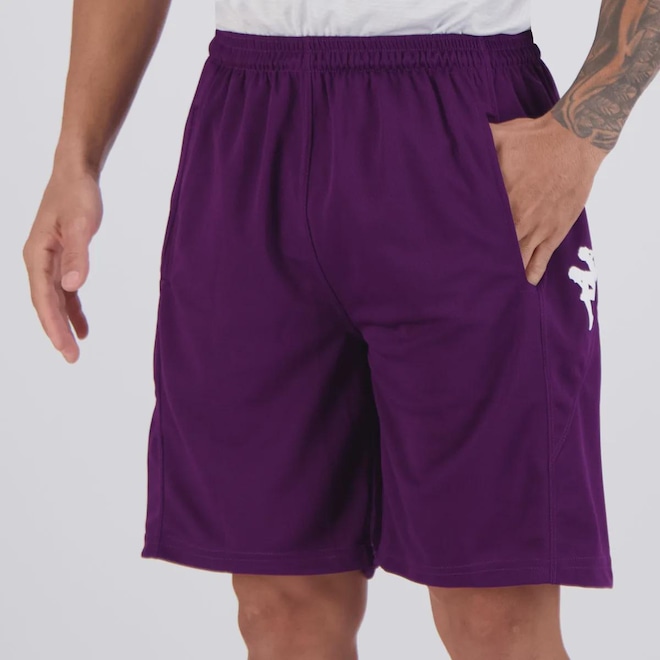 Composição: 100% Poliéster Ajuste: Elástico e cordão interno Cor predominante: Roxo Bolsos: Dois frontais, sem zíper Origem: Nacional Logo: Estampado Gênero: Masculino Forro: Não Dimensões aproximadas (A x L): P: 47 x 36 cm M: 48 x 37 cm G: 51 x 39 cm GG: 52 x 41 cm EG: 55 x 45 cm