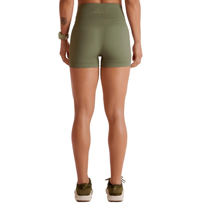 Shorts sem costura canelado com cós alto e anatômico que modela a silhueta e proporciona conforto durante a atividade, enquanto a borda de silicone garante que ele não saia do lugar.