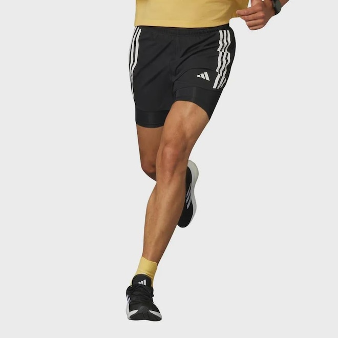 Enfrente seu desafio diário de corrida com o equipamento certo. Apresentando os últimos itens básicos de equipamentos de corrida da adidas, o Shorts Own the Run 3-Stripes 2 em 1 é uma mistura de conforto e funcionalidade. Mantenha-se seco e na zona mesmo quando você acelera seu ritmo. A camada de compressão interna integrada reduz a fadiga muscular, fornecendo suporte conforme você continua adicionando esses quilômetros. O novo cós extra largo garante que você esteja confortável durante toda a sua corrida, pois é feito de materiais antiabrasão supermacios que evitam atrito de qualquer tipo. Guarde seus itens essenciais nos bolsos laterais internos nas leggings internas para que você corra sem distrações. Não deixe que nada o impeça.