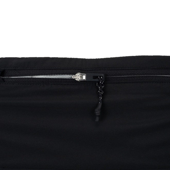 Possui forro, cós elástico ajustado por cordão e dois bolsos, um interno e outro traseiro com fechamento em zíper e forro antiumidade para guardar o celular sem preocupações.