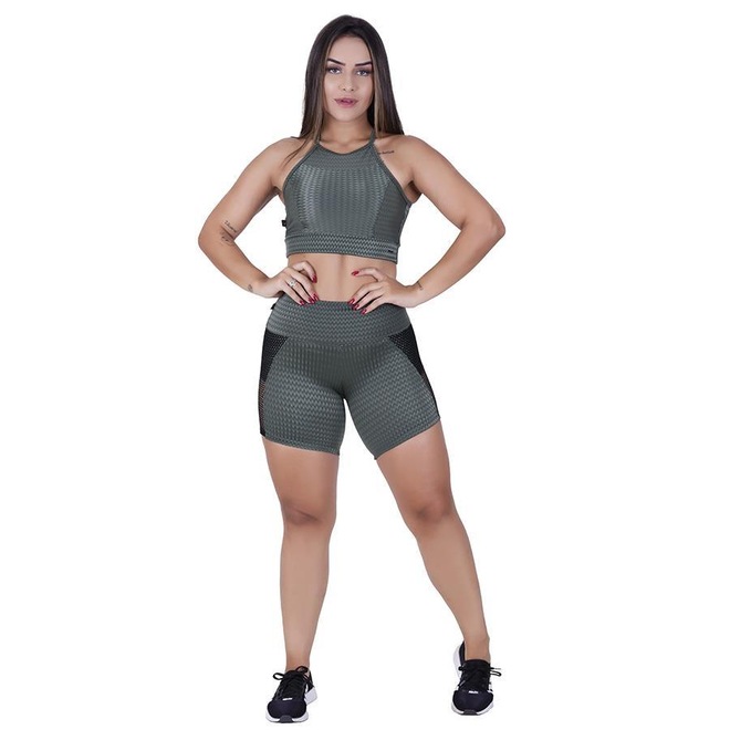 Short Orbis Fitness Meia Coxa Detalhe Tela Cirrê Textura - Feminino - Foto 1