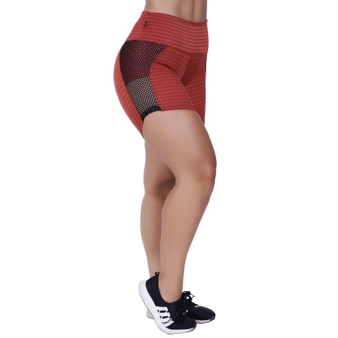 Short Orbis Fitness Meia Coxa Detalhe Tela Cirrê Textura - Feminino