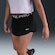 Os shorts externos de modelagem folgada são confeccionados em um tecido leve e macio como pêssego. Um par de shorts internos, lisos e elásticos, está integrado ao design, proporcionando maior cobertura.