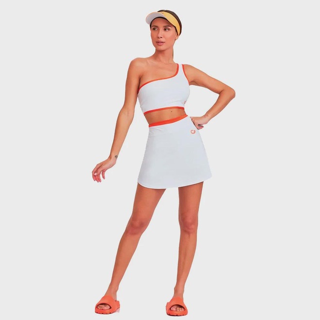Perfeito para a prática do Tênis ou do Beach Tennis, o Short Saia Caju Brasil Silk te dá conforto e elasticidade para jogar com estilo e liberdade! O modelo conta com cós de elásticos num tom de laranja. O design tem o branco neon como a cor predominante, que possui excelente respirabilidade, e possui um short interno, com bolso lateral ideal para guardar as bolinhas. Conta também com a tecnologia UV, que protege sua pele dos raios solares. Adquira já seu Short Saia Caju Brasil Silk e arrase durante as partidas!