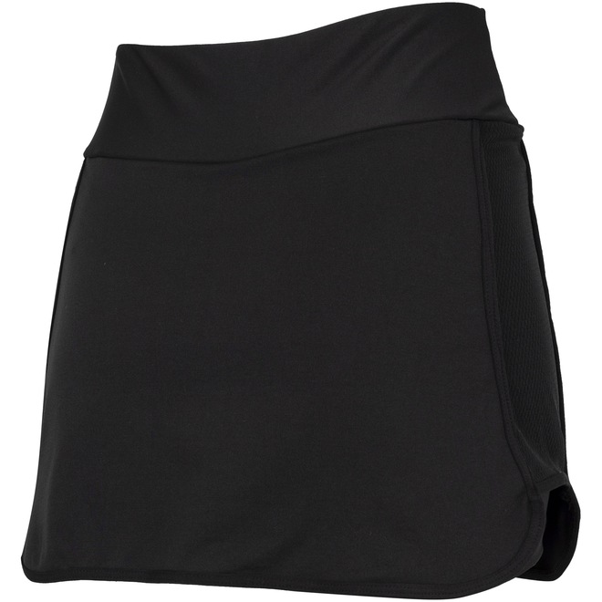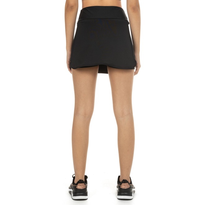 De ótimo ajuste no corpo garantido pelo elastano, possui extensão de tecido nas laterais da saia que ajudam a aumentar a mobilidade natural durante as atividades..
