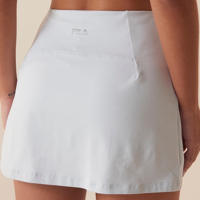 Skort feminino confeccionado em malha de poliamida elastizada. Modelagem reta com cintura alta. O shorts interno, com modelagem slim fit, traz gusset entrepernas, gancho com costura Flat (sem atrito com o corpo) e bolso lateral aplicado também com costura Flat. Seu tecido contém as tecnologias FLOW, que oferece secagem rápida e mantém o corpo na temperatura ideal para a prática esportiva, e a UV PROTECTION, que fornece proteção solar FPS 50+ dos raios UVA e UVB.ref: M17M72