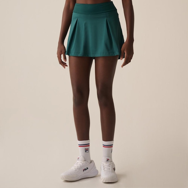 Esta peça oferece o melhor dos dois mundos: a leveza de uma saia e a segurança de um shorts. O shorts interno fixo possui um bolso invertido, perfeito para guardar as bolinhas de forma prática durante a partida.