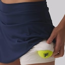 Saia shorts feminina desenvolvida com poliéster reciclado. A peça traz as tecnologias UV PROTECTION (proteção solar FPS 50+) e FLOW (mantém o corpo na temperatura ideal). Possui cós com elástico e shorts interno com bolsos para bola de Tennis. A assinatura da marca aparece com o patch F-Box na parte frontal. Comprimento: 36 cm.