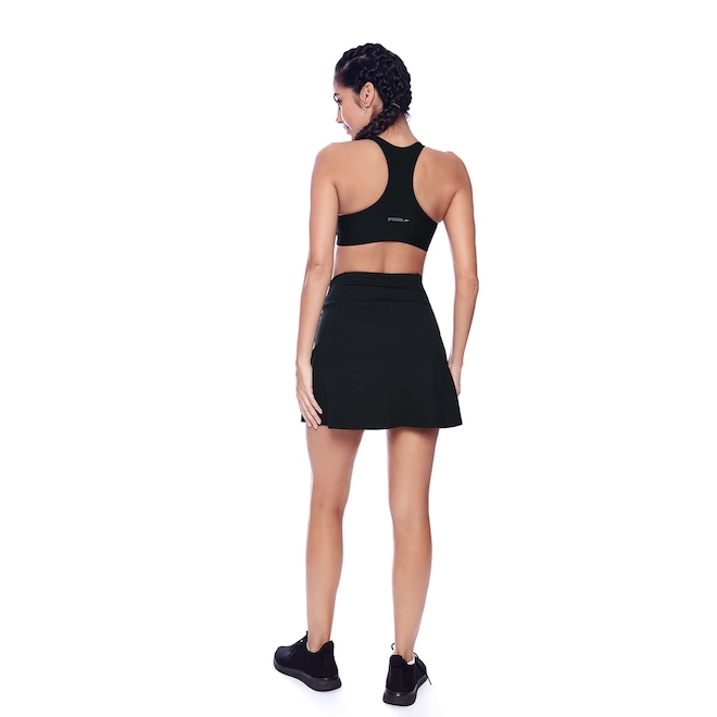 Shorts Embutido: Para maior segurança e conforto, a saia possui um shorts embutido, oferecendo suporte adicional e liberdade de movimento sem comprometer o estilo.