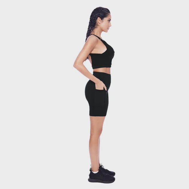 Diferente de tecidos pesados ou casuais, sua composição foi pensada para a máxima eficiência esportiva. O design conta com um cós de alta sustentação que mantém a peça firme durante movimentos intensos, além de um prático bolso lateral estrategicamente posicionado para transportar seu celular ou pequenos objetos com total segurança e sem balanço excessivo.