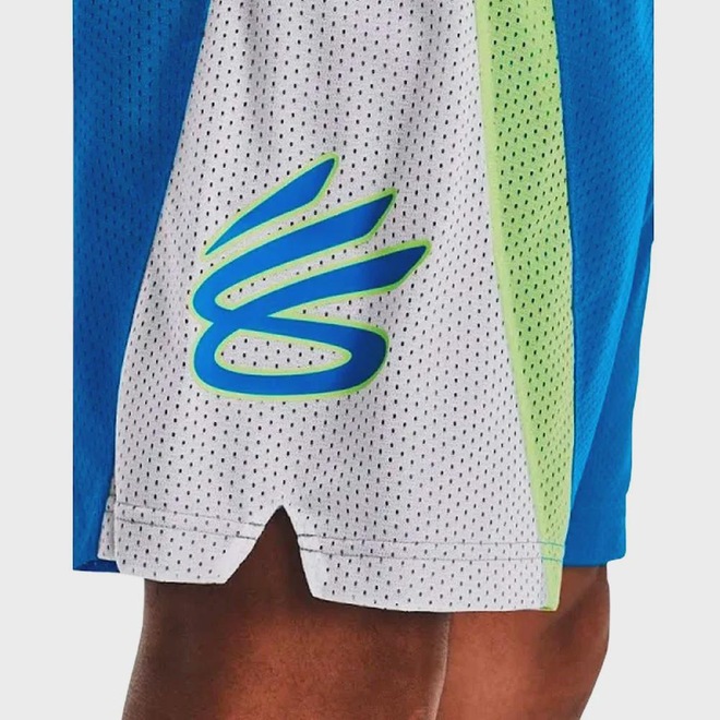 Nome: Short Under Armour Curry Splash 9 Azul Origem: Nacional. Gênero: Masculino Composição: 100% Poliéster Forro: 100% poliéster Indicado para: Treino Cor: Azul Peso: 250g (Referente ao tamanho M)