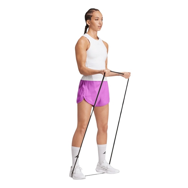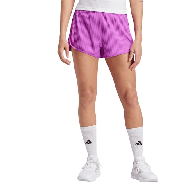 O Short Adidas Pacer Feminino é peça essencial para elevar suas atividades físicas a um novo nível. Feito em poliéster e equipado com a tecnologia Aeroready, este short é projetado para afastar o suor e manter sua pele seca por mais tempo, proporcionando um conforto incomparável durante seus treinos. O modelo traz malha canelada macia e cós elástico oferecendo um ajuste perfeito e seguro. Esse Short conta com abertura lateral para maior liberdade de movimento sem sacrificar o estilo. Embora sem bolsos, sua funcionalidade é incomparável. Com um design deslumbrante em cor única, este short é uma declaração de estilo e atitude, mostrando ao mundo a sua paixão pela moda esportiva. Medidas aproximadas (cm): P: 37x27 – M: 39x29 – G: 41x31 – GG: 43x33 (Largura x comprimento).