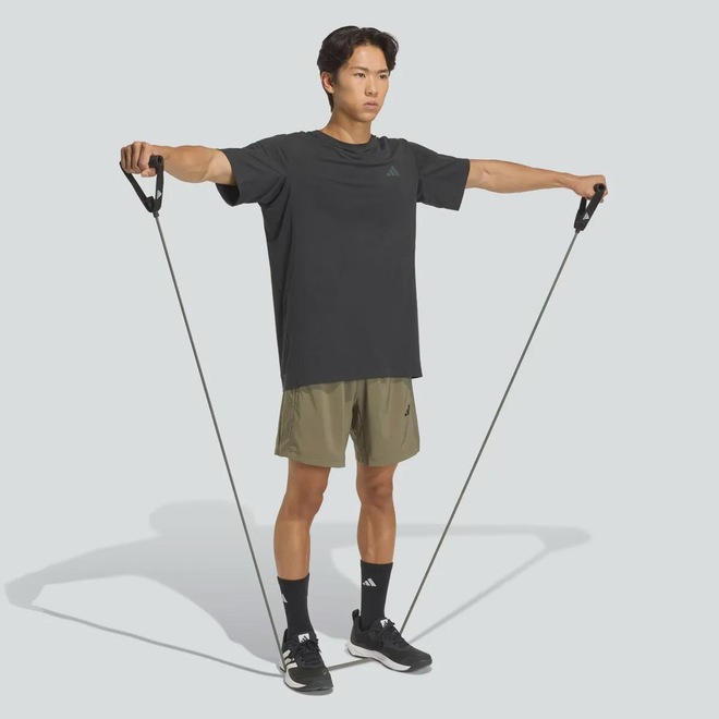 Tecnologia Climacool®: Tecnologia no tecido que se encarrega da gestão da ventilação e umidade do seu corpo, proporcionando conforto e performances excelentes, ideal para prática de exercícios Composição: 100% Poliéster Ajuste: Elástico reforçado na cintura Cor predominante: Verde Indicado para: Treino Origem: Importado Gênero: Masculino Logo: Estampada Bolsos: Sim, dois frontais Forro: Não Dimensões aproximadas (A x L): P:36 x 34 cm M: 38 x 37 cm G: 39 x 41 cm GG: 40 x 44 cm EG: 44 x 53 cm