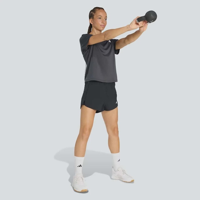 Composição: 100% Poliéster Ajuste: Elástico reforçado na cintura Cor predominante: Preta Indicado para: Treino Origem: Importado Gênero: Feminino Logo: Estampado Forro: Sim Bolso: Sim Dimensões aproximadas (A x L): P: 30 x 35 cm M: 32 x 37 cm G: 34 x 39 cm GG: 36 x 41 cm