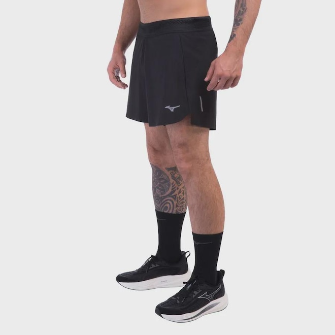 Shorts de Corrida Mizuno High 4 é vai trazer mais leveza para a sua corrida diária. Feito em tecido plano com elastano, com estrutura ripstop, ele é muito leve para que você tenha ampla liberdade de movimento. Possui cueca interna para maior conforto e segurança, além de bolso embutido na pala das costas com fechamento em zíper, para manter seus itens pessoais em segurança. Seu short externo possui acabamento com costuras termo fusionadas para maior leveza e menor atrito. Seu cós é de elástico trabalhado, com cordão de ajuste interno. Elementos em refletivo furta-cor deixa essa peça ainda mais especial.