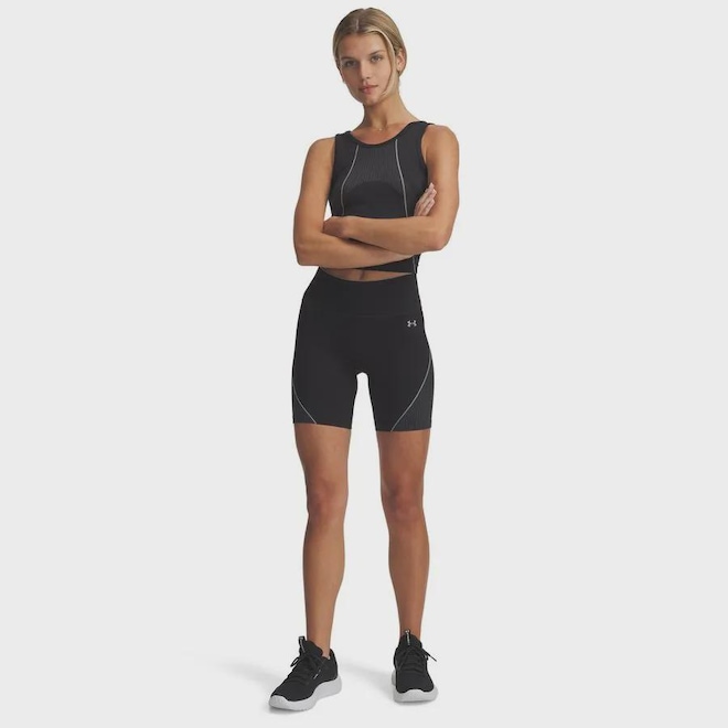 Tecido de malha bicolor supermacio com texturas mapeadas que modelam e favorecem o corpo. Design quase sem costuras para eliminar o atrito.