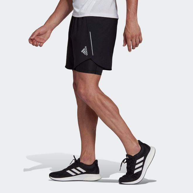O objetivo é simples: correr rápido. Este shorts adidas 2 em 1 ajuda você a chegar lá com um design leve, antitranspirante e de suporte. Guarde suas chaves e cartões no bolso à prova de suor nas costas. Os detalhes refletivos brilham nas corridas ao pôr do sol e nos quilômetros antes do amanhecer.