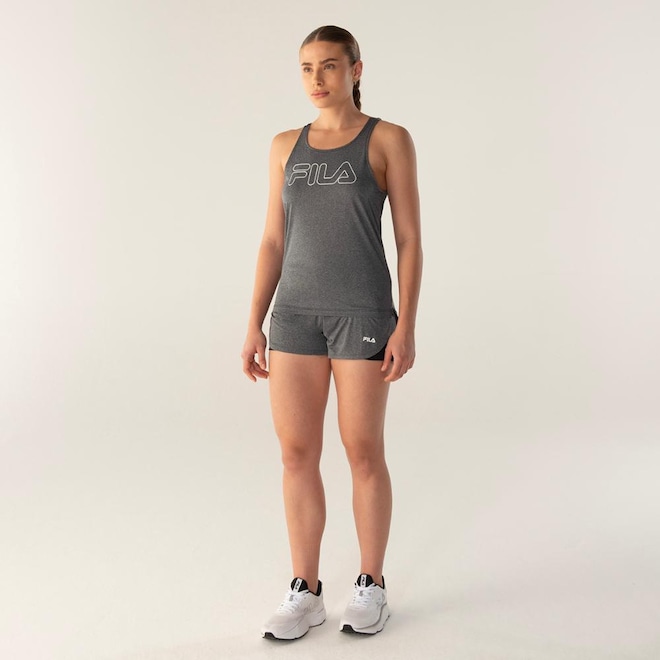 Shorts feminino produzido em malha mescla 100% poliéster com tecnologia FLOW para controle térmico e shorts interno em poliamida elastizada com tecnologia UV PROTECTION FPS 50+. O design conta com cós anatômico e bermuda interna com compressão moderada, garantindo conforto e mobilidade. Ideal para treinos de baixa e média intensidade. Logo FILA Linear aplicado na lateral esquerda frontal. Comprimento total: 33 cm. Entrepernas: 6 cm.ref: M17NWJ