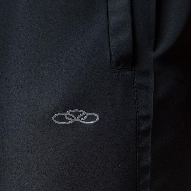 Possui cós com elástico e cordão interno para um ajuste personalizado, além de bolsos laterais para guardar itens essenciais.