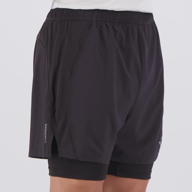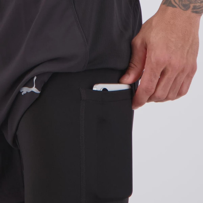 Tecnologia Dry Cell: Mantém o suor longe da pele, enquanto os recursos de fluxo de ar anatomicamente colocados oferecem uma superior regulagem de temperatura para manter o corpo seco e fresco durante o uso. Composição short externo: 88% Poliéster e 12% Elastano Composição Forro: 85 Poliéster e 15% Elastano Cor predominante: Preto Ajuste: Elástico e cordão Indicado para: Corrida Origem: Nacional Gênero: Masculino Logo: Estampada Dimensões aproximadas (A x L): P: 41 x 37 cm M: 43 x 39 cm G: 45 x 41 cm GG: 47 x 43 cm