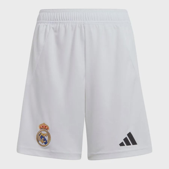 Vista este shorts infantil adidas do primeiro uniforme do Real Madrid e sinta a paixão do Bernabéu. Parte de um uniforme de futebol que celebra as tradições de Madrid, ele exibe um escudo do time bordado. O tecido AEROREADY que controla a umidade mantém os torcedores secos e confortáveis enquanto gritam pelo seu time. Forma padrão.
