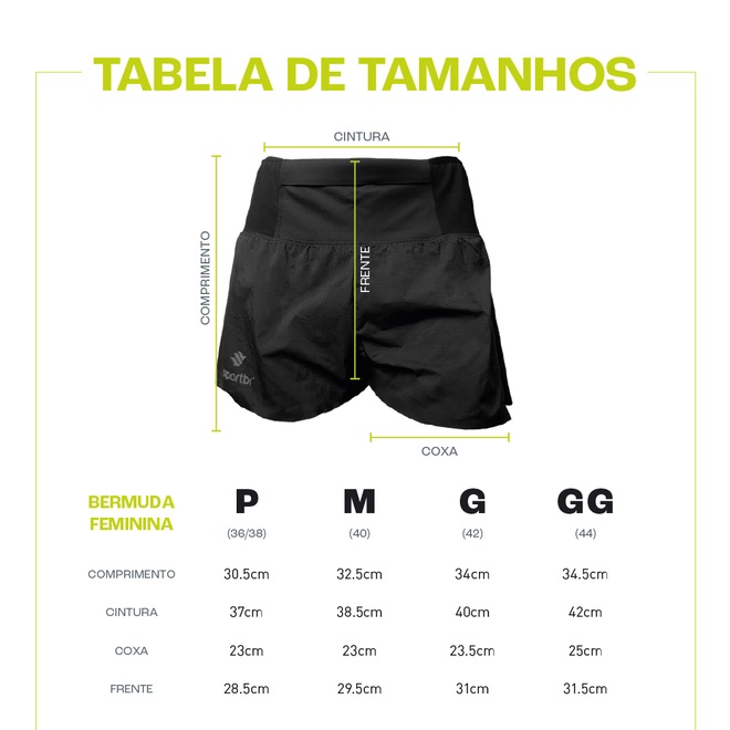 • Calcinha interna em malha 150g – 86% Poliéster e 14% Elastano