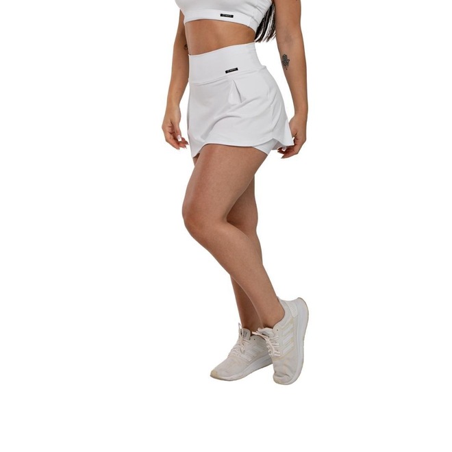 O short saia é uma peça confortável e de tecido maleável utilizada para a prática de qualquer atividade física. Ele se caracteriza por oferecer a segurança e a comodidade de um short, mas agrega todo o charme de uma sainha, que também impede que o corpo fique muito marcado.