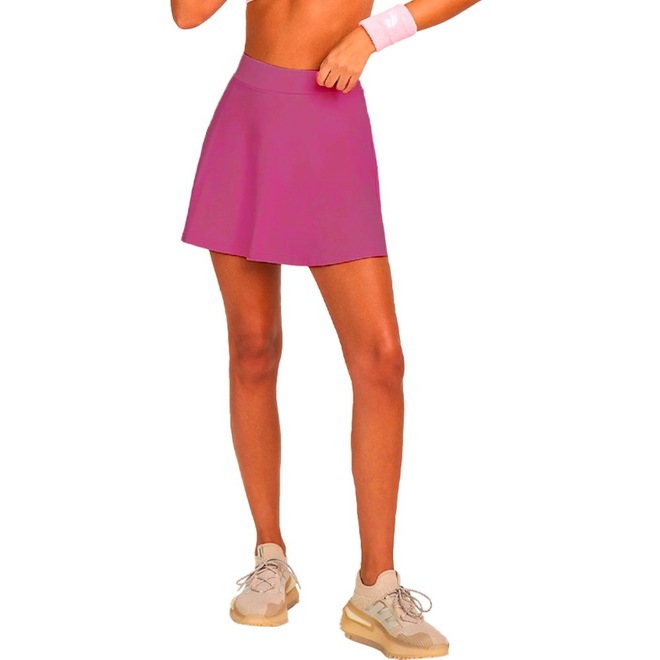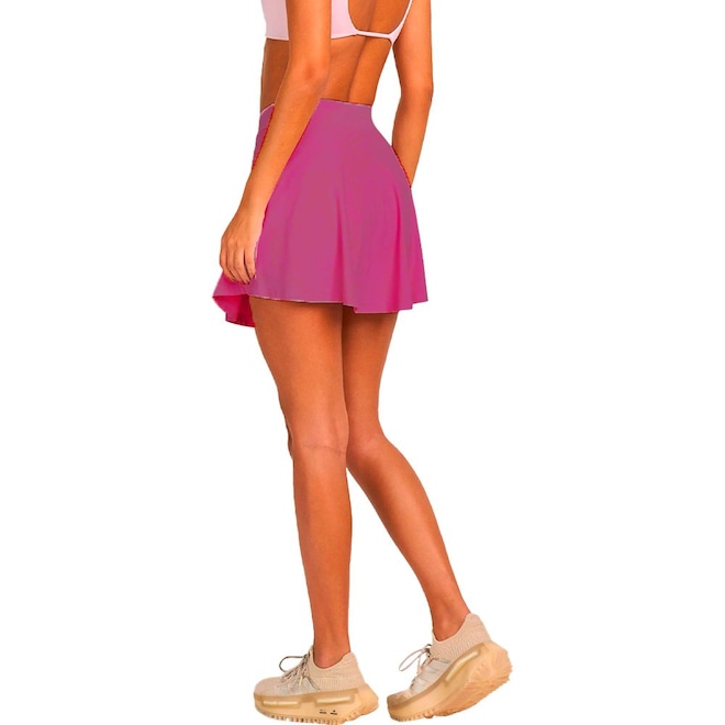 O Shorts Saia Alto Giro Eterna Feminino combina feminilidade e funcionalidade, ideal para quem busca conforto sem abrir mão do estilo. Sua modelagem levemente evasê com shorts interno proporciona um caimento soltinho e delicado, sem comprometer a mobilidade e a performance. O modelo conta com bolso interno, perfeito para armazenar pequenos pertences como celular, garantindo praticidade no dia a dia. Confeccionada em tecido de 83% poliamida e 17% elastano com proteção UV e tecnologia easy care, a peça não amassa e possui secagem rápida, tornando-se uma opção versátil para diferentes ocasiões. O design é finalizado com um detalhe refletivo do símbolo Alto Giro na barra, garantindo um toque moderno e maior visibilidade. Indicada para atividades de baixo a médio impacto, como caminhadas, treinos funcionais e tênis. Destaques da peça: Proteção UV, Easy care, Bolso interno, Shorts embutido, Detalhe refletivo, Modelagem evasê. Perfeito para compor os seus looks! 83% poliamida, 17% elastano;Tecnologia Easy Care;Proteção UV;≅ Saia externa: 38cm;≅ Short interno: 34cm.