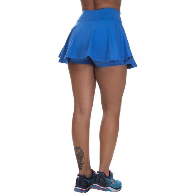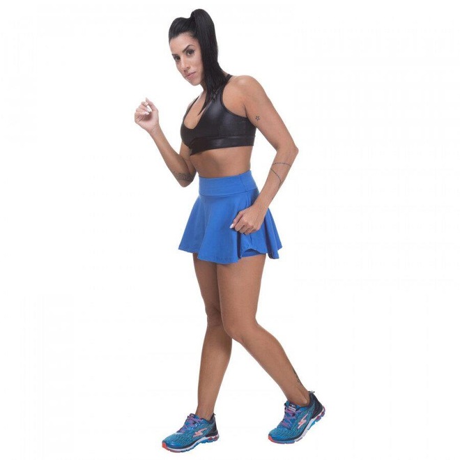 Este shorts saia foi desenvolvido em poliamida com o cós alto.