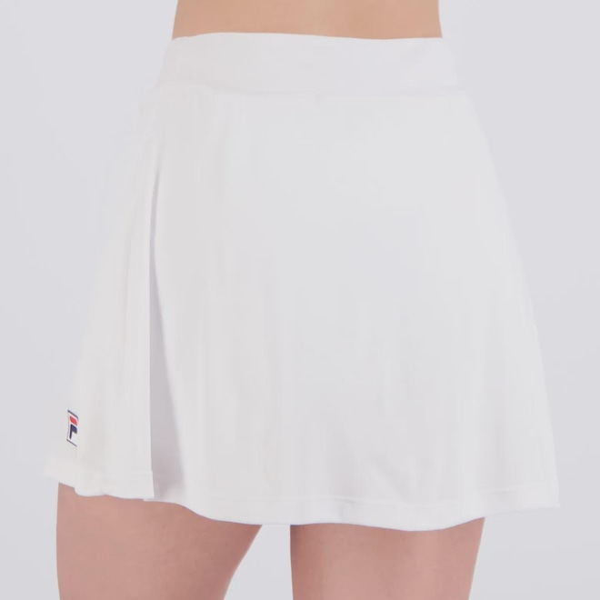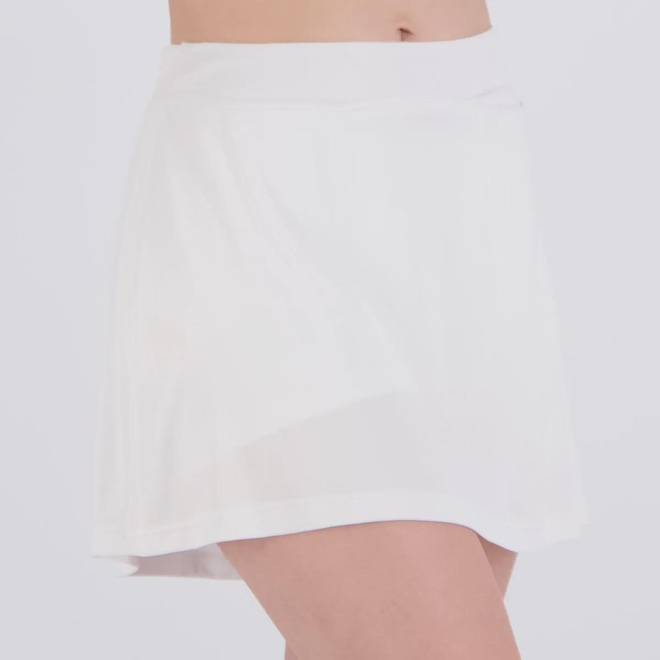 Tecnologias Flow®: Elimina com rapidez o suor, facilitando sua evaporação, além de manter o corpo na temperatura ideal. UV Protection: Protege a pele da ação dos raios solares, gerando conforto e proteção durante a prática esportiva. Composição saia: 97% Poliéster e 03% Elastano Composição shorts: 86% Poliamida e 14% Elastano Ajuste: Elástico reforçado no cós Cor predominante: Branca Indicado para: Tênis Origem: Nacional Gênero: Feminino Logo: Emborrachada Bolsos: Dois no shorts para bolas de tênis, sem zíper Dimensões aproximadas (A x L): P: 34 x 35 cm M: 35 x 41 cm G: 36 x 42 cm GG: 37 x 45 cm EG: EEG: