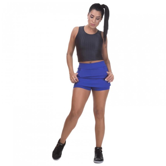 Este shorts saia foi desenvolvido em poliamida com cós em dupla camada pra dar sustentabilidade ao abdômen.